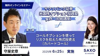 守屋史章氏による米国株オプション投資塾(初級)-第3講「コールオプションを使ってリスクを抑えた株式投資法(カバードコール)」