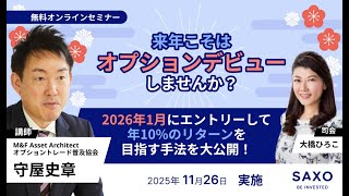 守屋史章氏による「来年こそはオプションデビューしませんか?2026年1月にエントリーして年10%のリターンを目指す手法を大公開!」