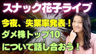 スナック花子ライブ今夜23時から!今夜、失業率発表!ダメ株トップ10を発表しました!ダメ株について話し合いましょう〜!スナック花子ライブ今夜23時から!今夜、失業率発表!ダメ株トップ10を発表しました!ダメ株について話し合いましょう〜!