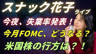 スナック花子ライブ今夜22時から!今夜、失業率発表!利下げしたら今後の株価はどうなる?再びS&P500最高値!トランプ関税はどうなる?京都オフ会の感想などなど、今夜も話題が盛りだくさん!遊びにきてね!