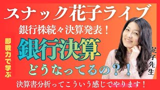 スナック花子ライブ今夜23時から!銀行株続々決算発表!銀行決算、どうなっているの?!決算書分析ってこんな感じでやります!スナック花子ライブ今夜23時から!銀行株続々決算発表!銀行決算、どうなっているの?!決算書分析ってこんな感じでやります!