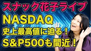 スナック花子ライブ今夜22時から!NASDAQ史上最高値目前!S&P500も目前!やっぱり強い米国株!花子と一緒に盛り上がろう〜!遊びに来てね!!