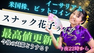スナック花子ライブ今夜22時から!米国株、ビットコイン、イーサリアム最高値更新!今後の対策を話し合いましょう〜!