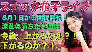 スナック花子今夜22時から!8月1日から関税発動!波乱に満ちた米国株!今後、上がるのか?下がるのか?金曜日の夜は花子と一緒に作戦会議!遊びに来てね!