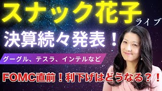 スナック花子今夜22時から!決算続々発表!グーグル、テスラ、インテルなど!FOMC直前!利下げはどうなる?金曜日の夜は花子と一緒に話しましょう!
