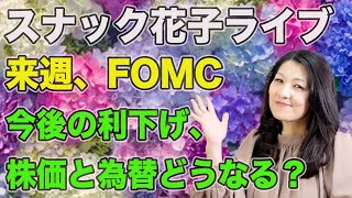 スナック花子ライブ今夜22時から!来週、FOMC!今後の利下げ、株価と為替どうなる?みんな遊びに来てね!