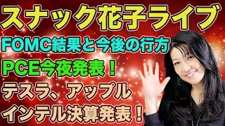 スナック花子ライブ今夜23時から!FOMC結果と今後の行方!PCE今夜発表!テスラ、アップル、インテル決算発表!今夜も花子と楽しく株トーーーーーク!!!みんな、遊びに来てね!!