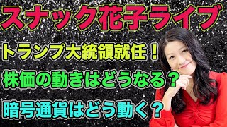 スナック花子ライブ今夜23時から!トランプ大統領就任!株価の動きはどうなる?暗号通貨はどう動く?今夜も楽しく株トーーーーク!みんな、遊びに来てね!質問も受け付けますよ〜!