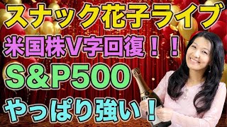 スナック花子ライブ今夜22時から!米国株V字回復!!S&P500やっぱり強い!!ホールドした皆様、おめでとうございます!!盛り上がる米国株について語りましょう〜!