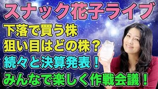 スナック花子ライブ今夜22時から!下落で買う株 狙い目はどの株?続々と決算発表!みんなで楽しく作戦会議!遊びに来てね!
