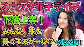 スナック花子ライブ今夜22時!下落上等!みんな、株を買ってるか〜い?今日も楽しく花花金金株株ライブ!