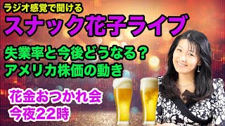 スナック花子ライブ!失業率と今後どうなる?アメリカ株価の動き!花金おつかれ会!今夜22時!作業中でも聴けます!