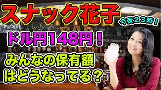 スナック花子今夜23時!ドル円148円!みんなの保有額はどうなってる?初心者大歓迎!質問も受け付けてます!遊びに来てね!