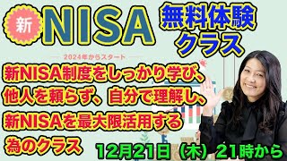 新NISA無料体験クラス!12月21日(木)21時からライブ開始!新NISAに興味があるけど、イマイチよく分かっていない人や自分で株を選べるようになりたい人に分かりやすく解説します!初心者大歓迎!