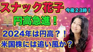 スナック花子今夜23時!円高急進!2024年は円高?!米国株には追い風か?投資初心者さんも大歓迎!金曜日の夜、花子と一緒に米国株について語り合いましょう〜!