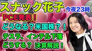 スナック花子ライブ今夜23時!PCE発表!どうなる米国株?!テスラ、インテル下落どうする?決算解説!初心者さんも大歓迎!質問も受け付けてます!遊びに来てね!
