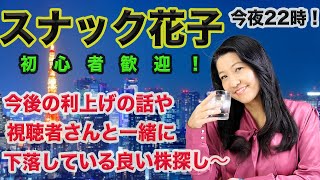 スナック花子今夜22時!今夜は今後の利上げの話とか視聴者さんと一緒に下落している良い株探しをしたいと思います!ぜひ、遊びに来てね!初心者大歓迎です!