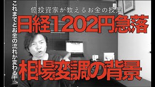 【重要】日経平均1202円急落!相場の変調が始まっている!初心者は危ない相場。グロースからバリューシフト