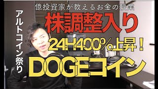 日経平均534円安!株は調整入りか。DOGEコイン(ドージコイン)24時間で400%の爆上げ!仮想通貨が熱い!