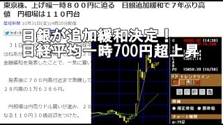 2014年10月31日銀追加緩和決定!黒田総裁、株高、投資、円安