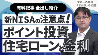変わるNISAの注意点「駆け込み投資」のポイントは 初心者必見、おつり・ポイントで「ながら投資」 若年層の住宅ローン大幅増 金利上昇リスクは 【まねびの必読】