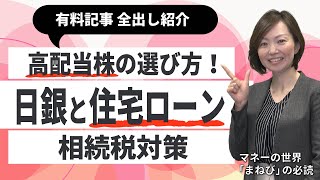 高配当株、減配リスクを避ける3つの株式投資の視点、日銀の実質利上げで住宅ローンの借り方はどう変わる、相続性の新手法「精算課税」で年110万円の非課税枠【まねびの必読】