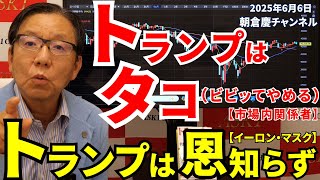 2025年6月6日 トランプはタコ(ビビッてやめる)【市場内関係者】 トランプは恩知らず【イーロンマスク】【朝倉慶の株式投資・株式相場解説】