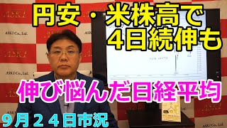 2024年9月24日【円安・米株高で4日続伸も伸び悩んだ日経平均】(市況放送【毎日配信】)