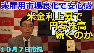 2024年10月7日【米雇用市場良化で安心感 米金利上昇で円安株高続くのか】(市況放送【毎日配信】)