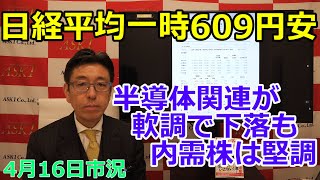 2025年4月16日【日経平均一時609円安 半導体関連が軟調で下落も内需株は堅調】(市況放送【毎日配信】)