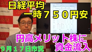 2024年9月17日【日経平均一時750円安 円高メリット株に資金流入】(市況放送【毎日配信】)