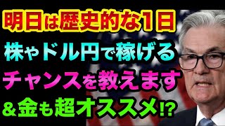 明日は歴史的な1日になるかも?FOMCの結果ごとに、株やドル円で稼げるチャンスを解説。金価格が絶好の買い場理由と利上げはタカ派かハト派で円安の運命【株FX日経平均ドル円FOMCユーロ円】