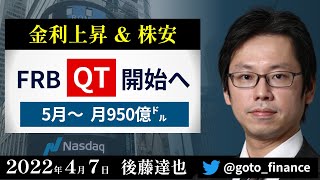 FRB、5月にQT開始へ 月950億ドル 金利上昇&株安に(2022/4/7)