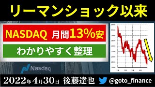 NASDAQ 4月13%安 リーマンショック以来(2022/4/30)