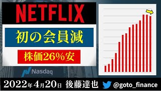 NETFLIX 初の会員減 競争激化 株価急(2022/4/20)