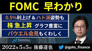 FOMCスピード解説 米国株急上昇(2022/5/5) ナスダック3%高 パウエルFRB議長会見 6月0.5%利上げが基本線