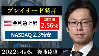 米金利 急上昇 ナスダック下落 ブレイナードFRB理事が引き締め姿勢