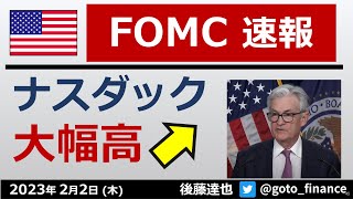 FOMC 0.25%利上げ ナスダック大幅高 パウエル会見を好感