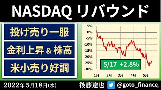 株リバウンド ナスダック2.8%高(2022/5/18))