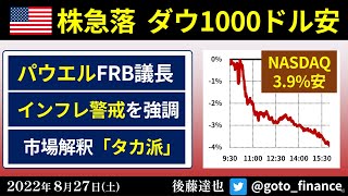 米国株急落 ナスダック4%安 パウエルFRB議長講演@ジャクソンホール(2022/8/27)