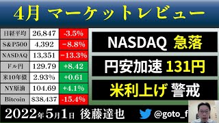 4月の金融市場をふりかえる ナスダック急落、円安加速(2022/5/1)