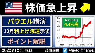 米国株急騰 ナスダック4% パウエルFRB議長講演 ポイント解説