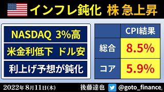 米CPI 市場予想下回る ナスダック株急上昇 利上げ予想が鈍化(2022/8/11)