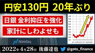 円安 1ドル=130円台に 日銀は金融緩和継続 指値オペ明確化(2022/4/28)