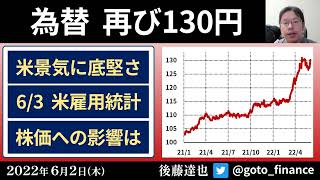 円安 再び130円に あす米雇用統計(2022/6/2)