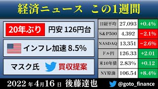 今週の経済ニュース 20年ぶり円安 米インフレ加速 イーロンマスクTwitter買収提案(2022/4/16)