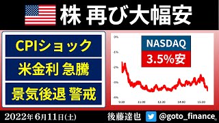米国株 また急落 CPIショック 米金利急騰、FOMCは?(2022/6/11)