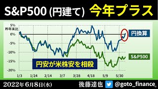 S&P500 円建てでは今年プラス 円安加速が株安相殺(2022/6/8)