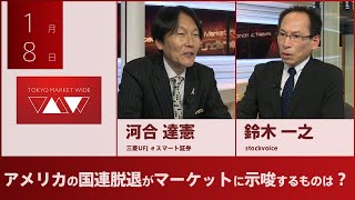アメリカの国連脱退がマーケットに示唆するものは?【ゲスト】 1月8日 三菱UFJ eスマート証券 河合達憲さんアメリカの国連脱退がマーケットに示唆するものは?【ゲスト】 1月8日 三菱UFJ eスマート証券 河合達憲さん
