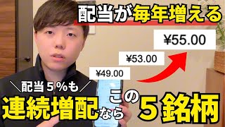【配当5%も】配当金が毎年増える!連続増配5銘柄